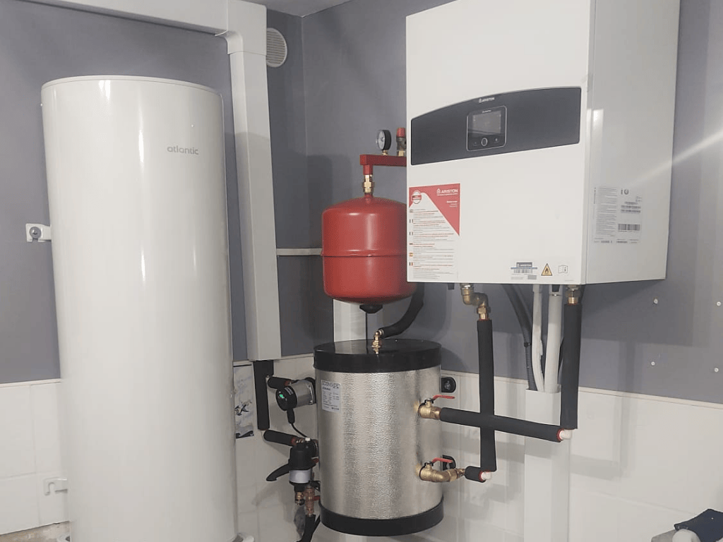 Même sans chaudière, l’ECS peut être produite via un ballon électrique, un ballon thermodynamique (sur air ambiant ou air extrait) ou une pompe à chaleur air/eau en version duo avec ballon. L’eau est chauffée par un échangeur, puis stockée dans le ballon; la priorité ECS lance la production avant le chauffage, tandis qu’une régulation maintient la bonne température. Radiateurs et/ou plancher chauffant peuvent rester assurés en parallèle. Le remplacement d’une chaudière fioul ou gaz est pris en charge; nos équipes vous orientent vers la solution la mieux adaptée.